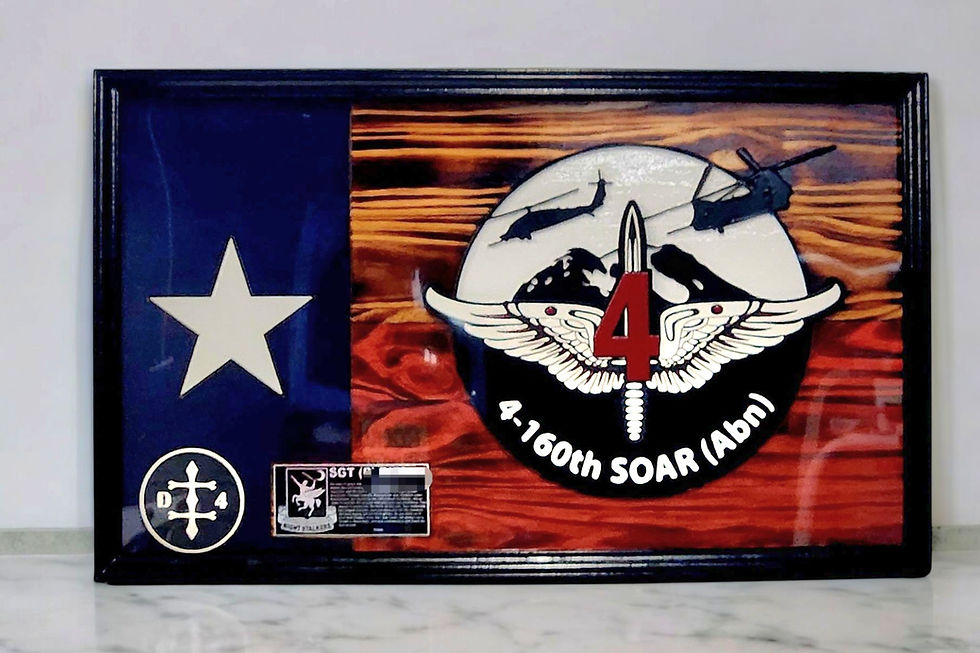 Explore our extensive collection of custom-crafted pieces, including plaques, coin holders, shadow boxes, signs, keepsakes, chain-of-command boards, flag stands, and more.